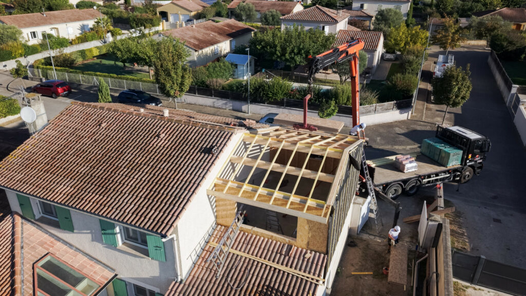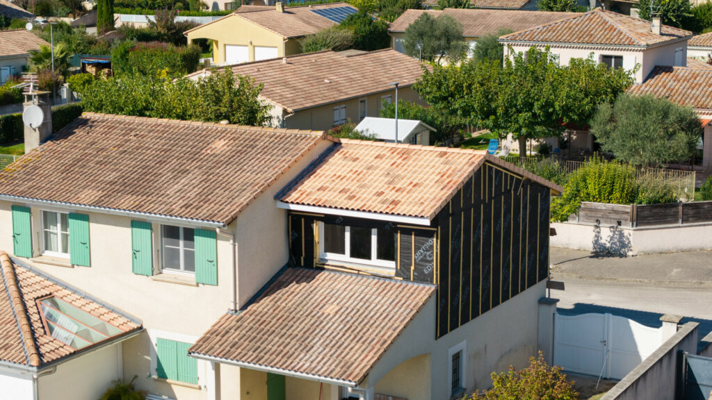 Créer de nouveaux volumes habitables en optimisant l’existant sans emprise supplémentaire au sol, c’est chose faite en seulement 2 mois grâce à cette surélévation.
